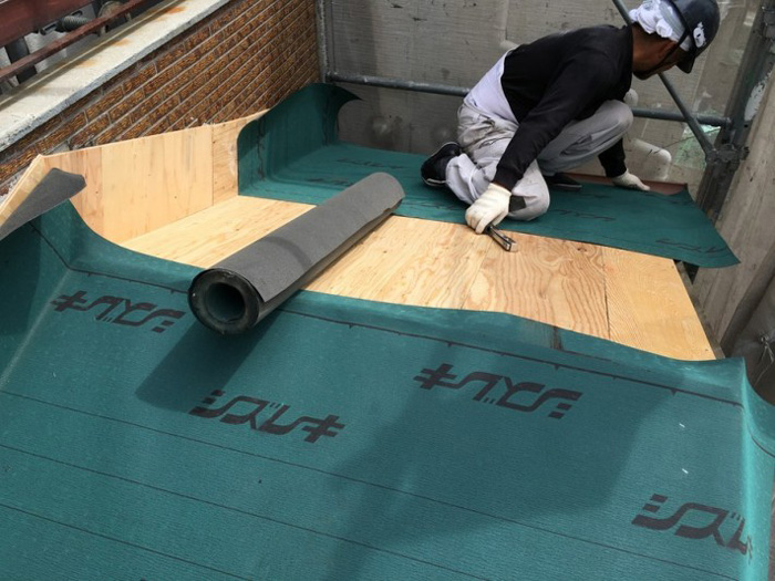 アスファルトルーフィングとは:雨漏りしないよう屋根の下地に板紙にアスファルトを染み込ませたアスファルトルーフィングを敷き詰めて防水します。