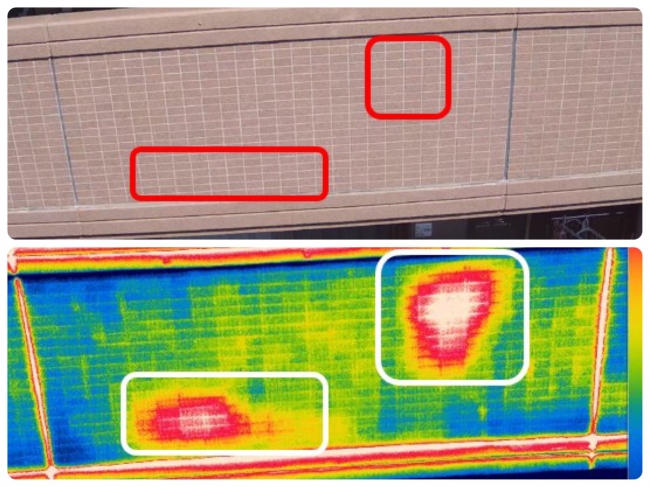 赤外線をタイル壁面に照射して、熱伝導を調べる方法です。
