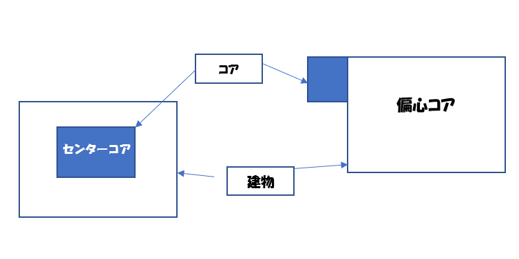 コアとは:建物の核となる部分のこと。設備や共用スペース、耐震要素(地震に抵抗する構造)を集中させた部分のこと。