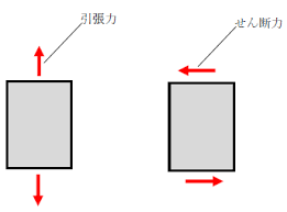 せん断とは:ものをずらすような力を言います。上下から荷重がかかると潰れたり引っ張られるときにズレが生じます。このちからをせん断力といいます。